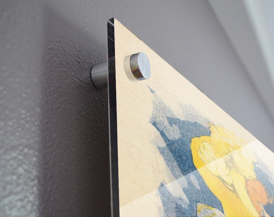 Printed to the edge - Ready to hang - provided with 4 premium polished aluminum stand off ( wall screws and mounting hardware provided ) We suggest a thicker 3/16" acrylic for any size over 42 inches to guarantee a straight acrylic, without curvature
