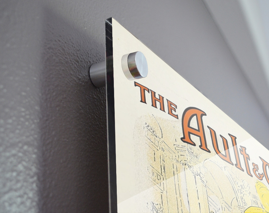Printed to the edge - Ready to hang - provided with 4 premium polished aluminum stand off ( wall screws and mounting hardware provided ) We suggest a thicker 3/16" acrylic for any size over 42 inches to guarantee a straight acrylic, without curvature