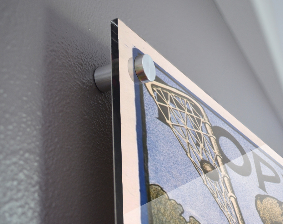 Printed to the edge - Ready to hang - provided with 4 premium polished aluminum stand off ( wall screws and mounting hardware provided )