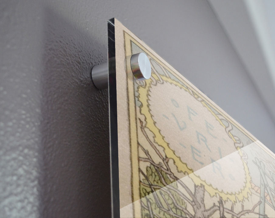 Printed to the edge - Ready to hang - provided with 4 premium polished aluminum stand off ( wall screws and mounting hardware provided )