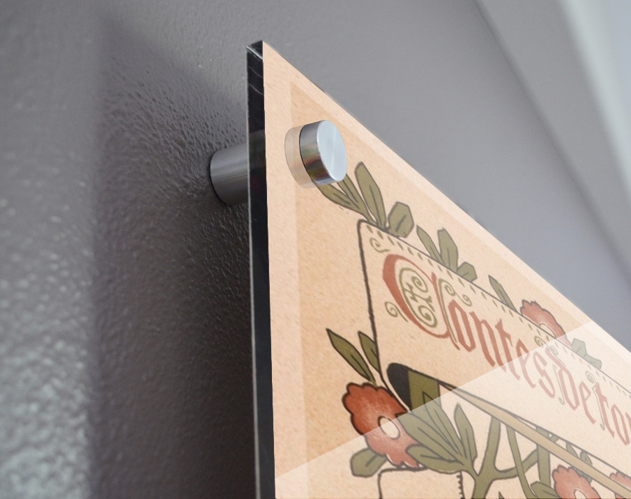 Printed to the edge - Ready to hang - provided with 4 premium polished aluminum stand off ( wall screws and mounting hardware provided )