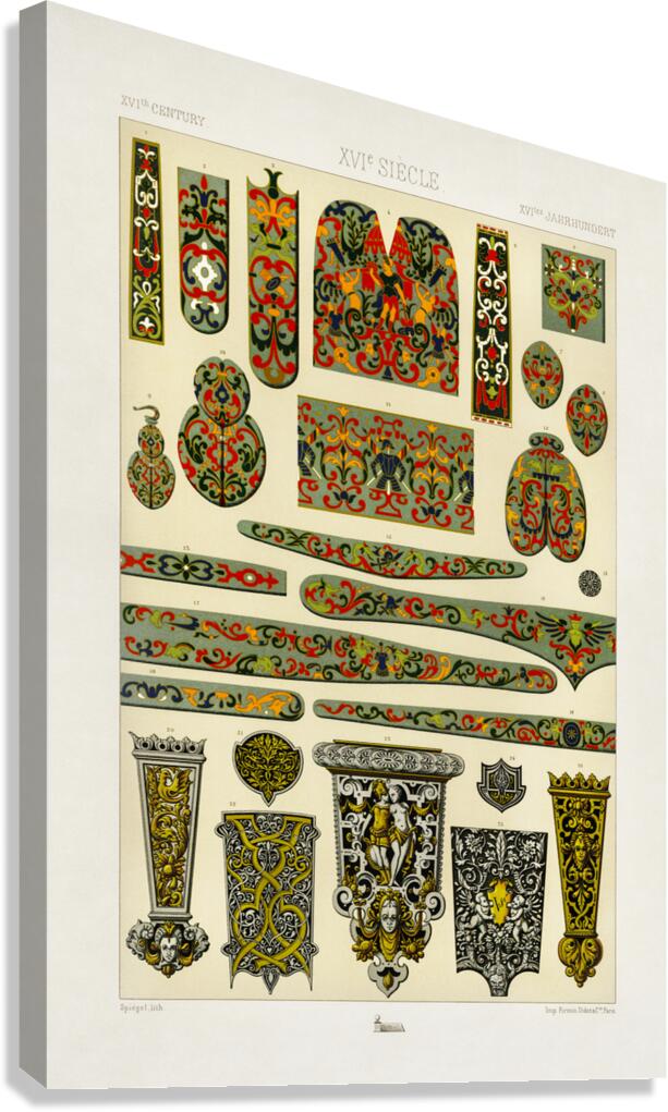16th Century pattern. 1888 edition Lornement Polychrome by Albert Racine 1825–1893. Canvas print