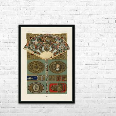 18th Century pattern. 1888 edition Lornement Polychrome by Albert Racine 1825–1893. Frame print