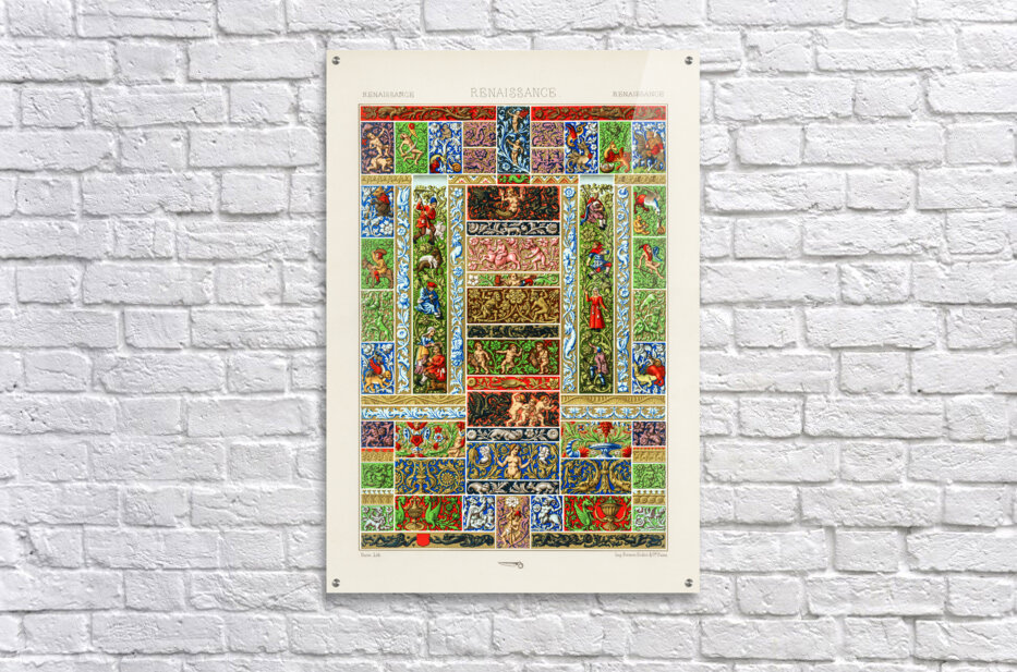 Get this artwork "Renaissance pattern. 1888 edition Lornement Polychrome by Albert Racine 1825–1893." in a framed print.