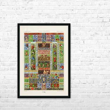 Renaissance pattern. 1888 edition Lornement Polychrome by Albert Racine 1825–1893. Frame print
