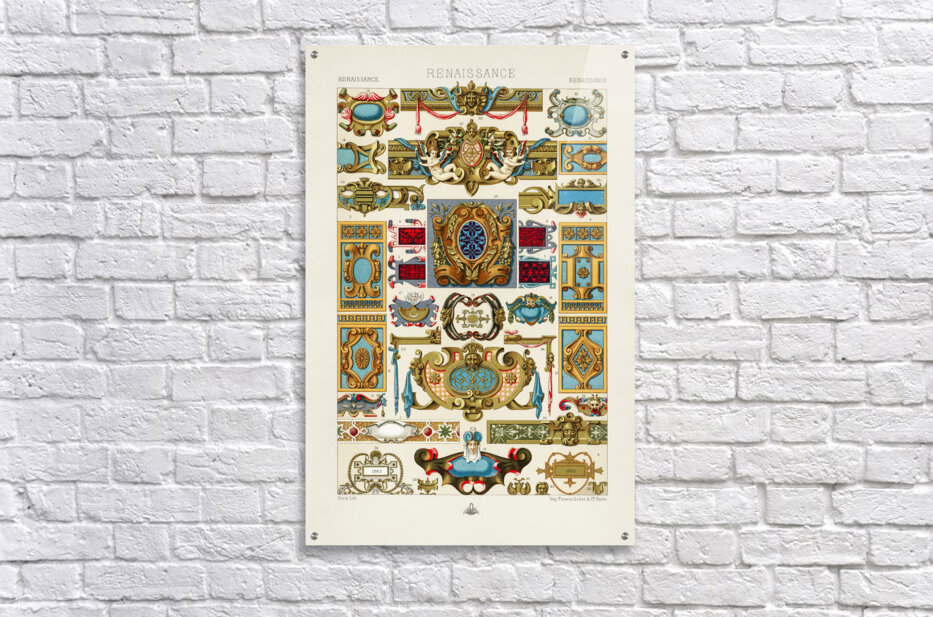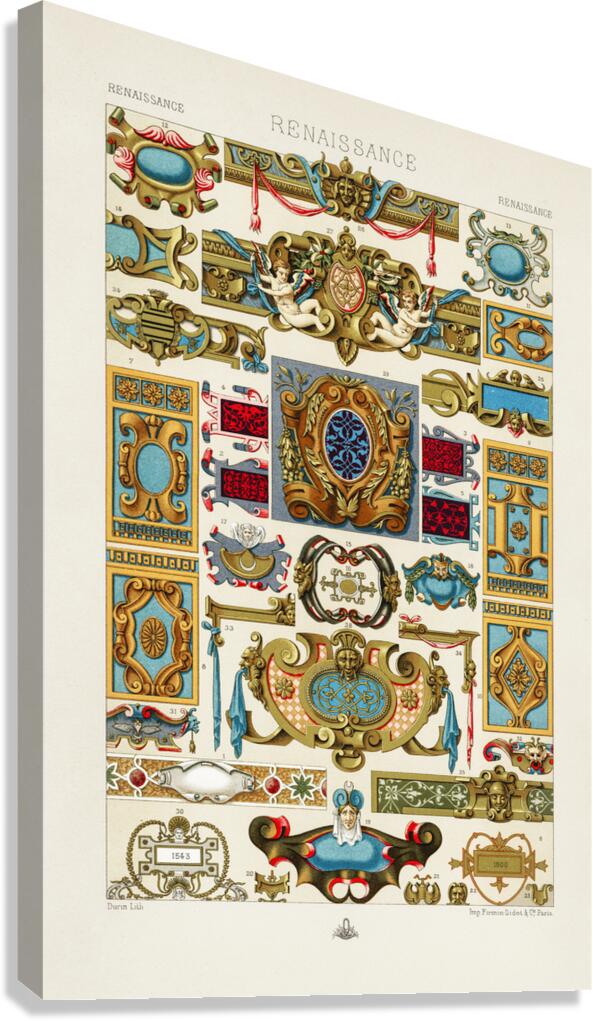 Get this artwork "Renaissance pattern. 1888 edition Lornement Polychrome by Albert Racine 1825–1893." in a framed print.