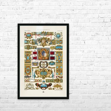 Renaissance pattern. 1888 edition Lornement Polychrome by Albert Racine 1825–1893. Frame print