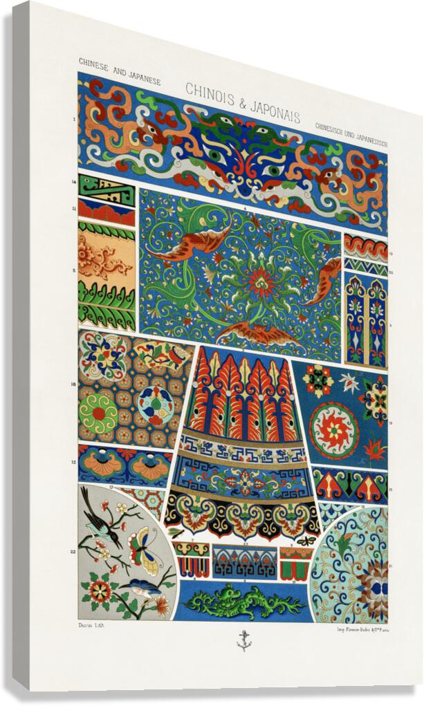 Chinese and Japanese pattern Lornement Polychrome 1888 by Albert Racinet 1825-1893. 1888 edition. Canvas print