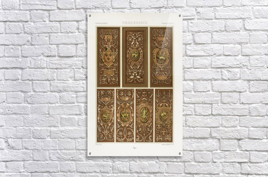 Get this artwork "Renaissance pattern. 1888 edition Lornement Polychrome by Albert Racine 1825–1893." in a framed print.