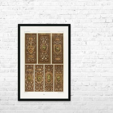 Renaissance pattern. 1888 edition Lornement Polychrome by Albert Racine 1825–1893. Frame print