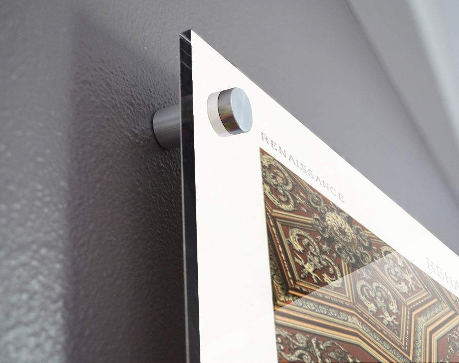 Printed to the edge - Ready to hang - provided with 4 premium polished aluminum stand off ( wall screws and mounting hardware provided ) We suggest a thicker 3/16" acrylic for any size over 42 inches to guarantee a straight acrylic, without curvature