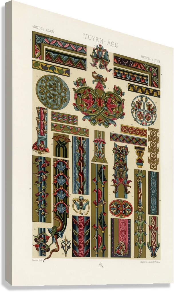 Middle-Ages pattern. 1888 edition Lornement Polychrome by Albert Racine 1825–1893. Canvas print