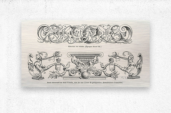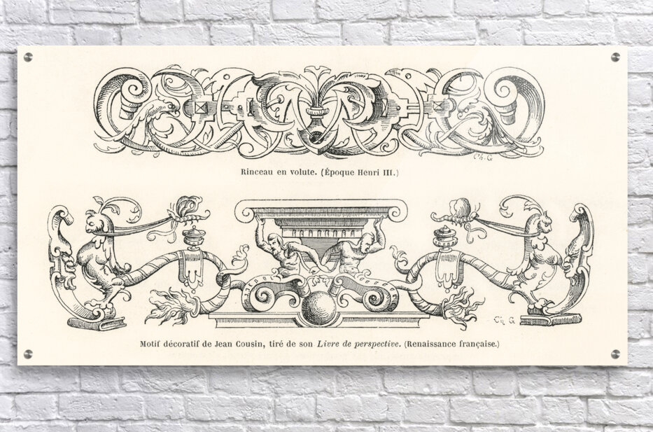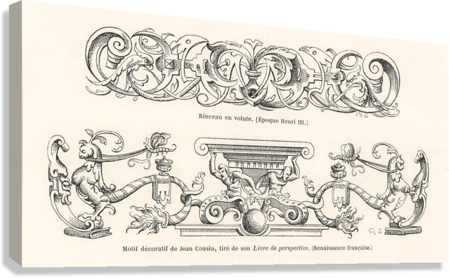 Renaissance ornamental designs. 1888 edition Lornement Polychrome by Albert Racine 1825–1893.  Wood print
