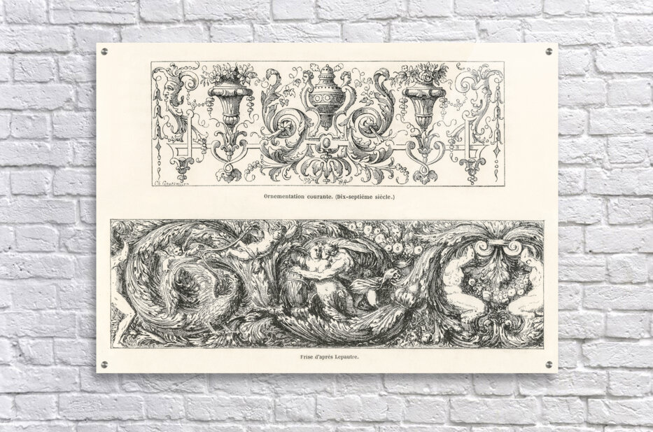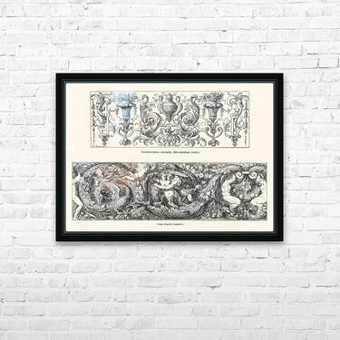 17th-century ornamental designs. 1888 edition Lornement Polychrome by Albert Racine 1825–1893. Picture Frame Printing