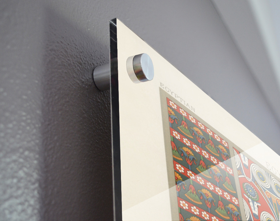 Printed to the edge - Ready to hang - provided with 4 premium polished aluminum stand off ( wall screws and mounting hardware provided ) We suggest a thicker 3/16" acrylic for any size over 42 inches to guarantee a straight acrylic, without curvature