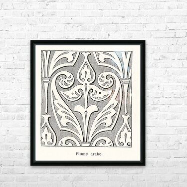 Arabic feather design. 1888 edition Lornement Polychrome by Albert Racine 1825–1893. Picture Frame Printing