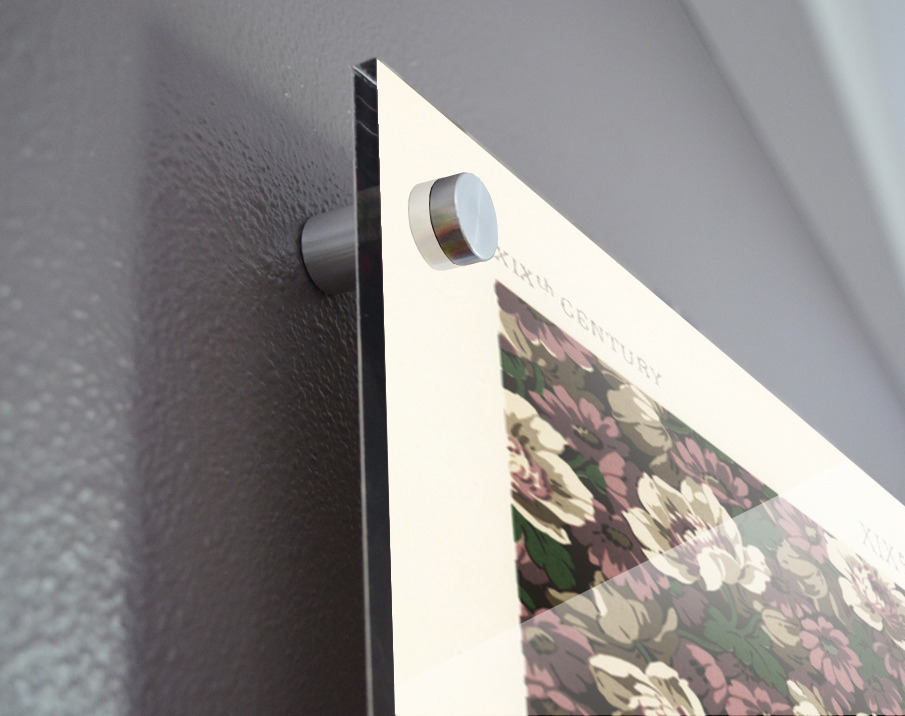 Printed to the edge - Ready to hang - provided with 4 premium polished aluminum stand off ( wall screws and mounting hardware provided ) We suggest a thicker 3/16" acrylic for any size over 42 inches to guarantee a straight acrylic, without curvature