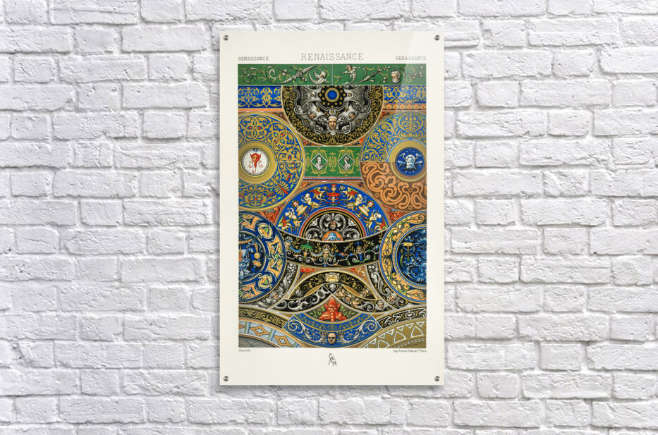 Get this artwork "Renaissance pattern. 1888 edition Lornement Polychrome by Albert Racine 1825–1893." in a framed print.
