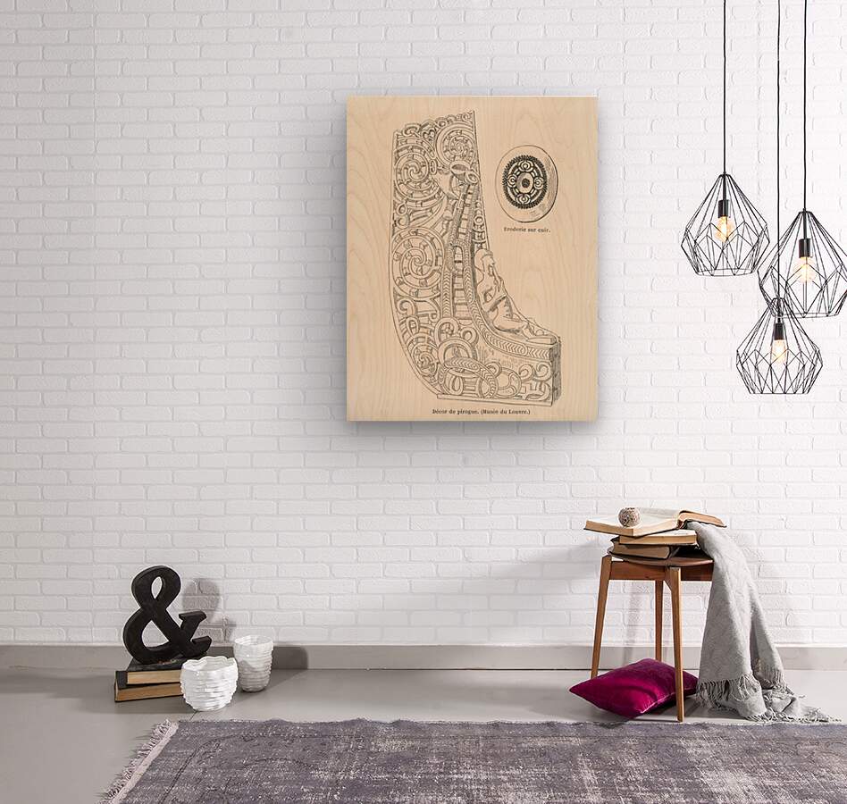 Canoe decorative element. 1888 edition Lornement Polychrome by Albert Racine 1825–1893. Wood print