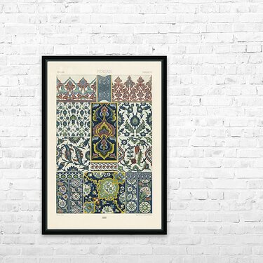 18th Century pattern. 1888 edition Lornement Polychrome by Albert Racine 1825–1893. Frame print