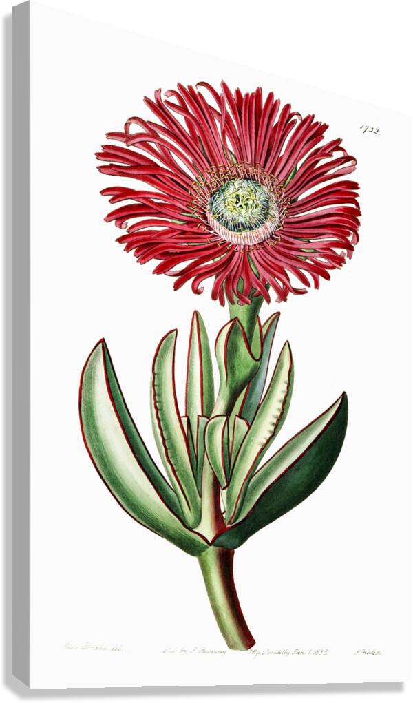 Get this artwork "Red-Edged Fig Marigold from Edwards Botanical Register 1829-1847 by Sydenham Edwards John Lindley and James Ridgway." in a framed print.