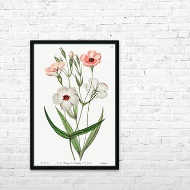 Get this artwork "Dark-eyed viscaria from Edwards Botanical Register 1829-1847 by Sydenham Edwards John Lindley and James Ridgway." in a framed print.