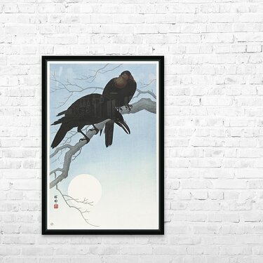 Two crows on a branch 1927 by Ohara Koson 1877-1945. Picture Frame Printing