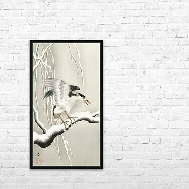Emerge on snowy branch 1900 - 1930 by Ohara Koson 1877-1945. Picture Frame Printing