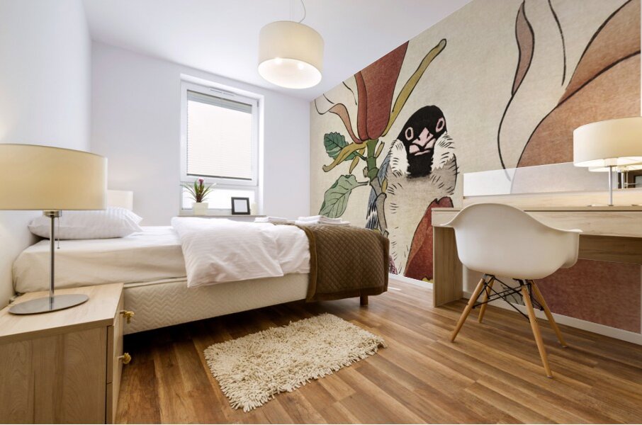 Sparrow on blooming magnolia branch 1900 - 1930 by Ohara Koson 1877-1945. Wood print