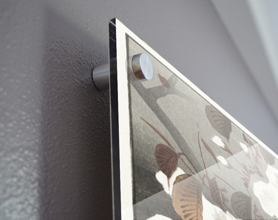 Printed to the edge - Ready to hang - provided with 4 premium polished aluminum stand off ( wall screws and mounting hardware provided ) We suggest a thicker 3/16" acrylic for any size over 42 inches to guarantee a straight acrylic, without curvature