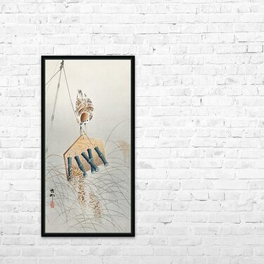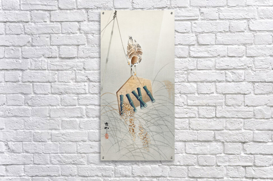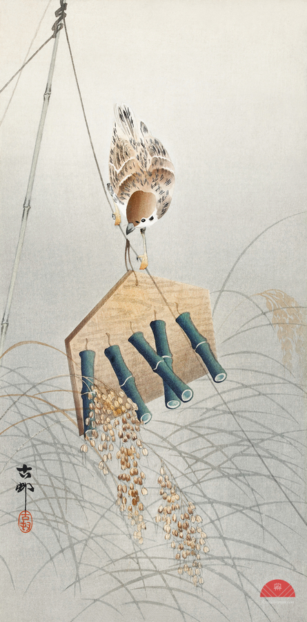 Ring sparrow on scarecrow 1900 - 1930 by Ohara Koson 1877-1945. Picture Frame Printing