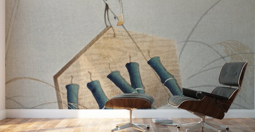 Ring sparrow on scarecrow 1900 - 1930 by Ohara Koson 1877-1945. Wood print