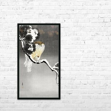 Hawk with sparrow 1900 - 1930 by Ohara Koson 1877-1945. Picture Frame Printing