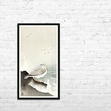 Gull on rock 1900 - 1910 by Ohara Koson 1877-1945. Picture Frame Printing