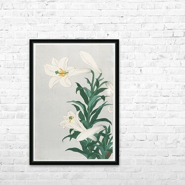 Lilies Ohara  1920 - 1930 by Ohara Koson 1877-1945. Picture Frame Printing