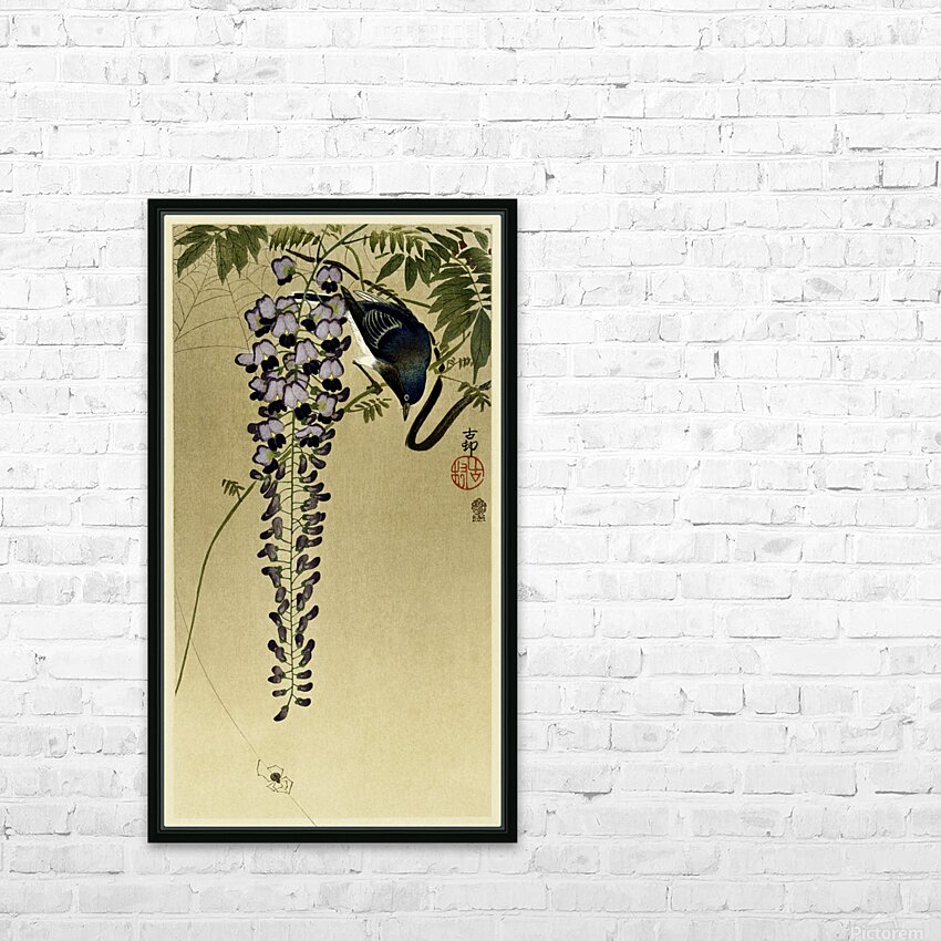Flycatcher at wisteria 1900 - 1910 by Ohara Koson 1877-1945. Picture Frame Printing