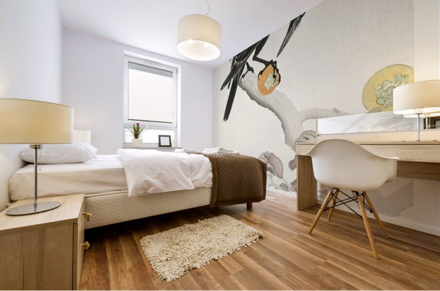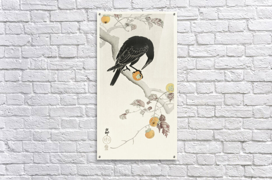 Crow with kaki fruit 1900 - 1910 by Ohara Koson 1877-1945. Picture Frame Printing