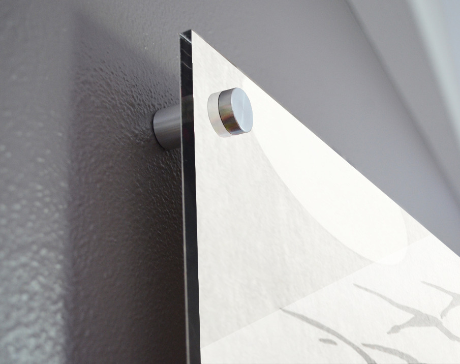 Printed to the edge - Ready to hang - provided with 4 premium polished aluminum stand off ( wall screws and mounting hardware provided ) We suggest a thicker 3/16" acrylic for any size over 42 inches to guarantee a straight acrylic, without curvature