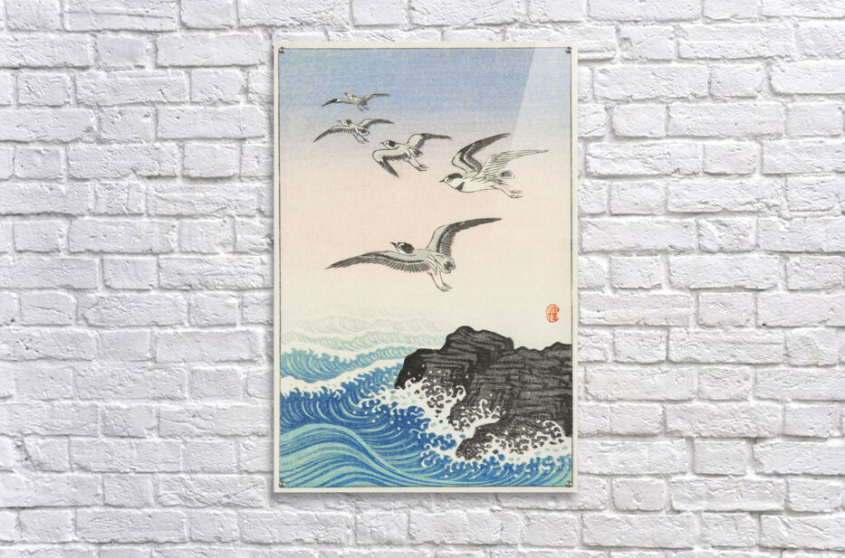 Five seagulls above the sea 1900 - 1945 by Ohara Koson 1877-1945. Picture Frame Printing