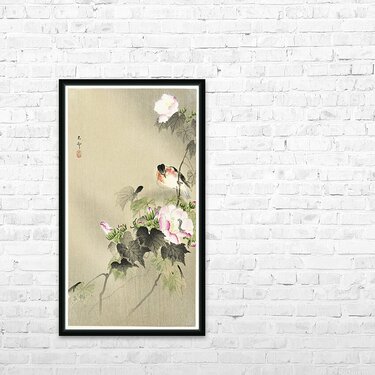 Bird and caterpillar 1900 - 1930 by Ohara Koson 1877-1945. Picture Frame Printing