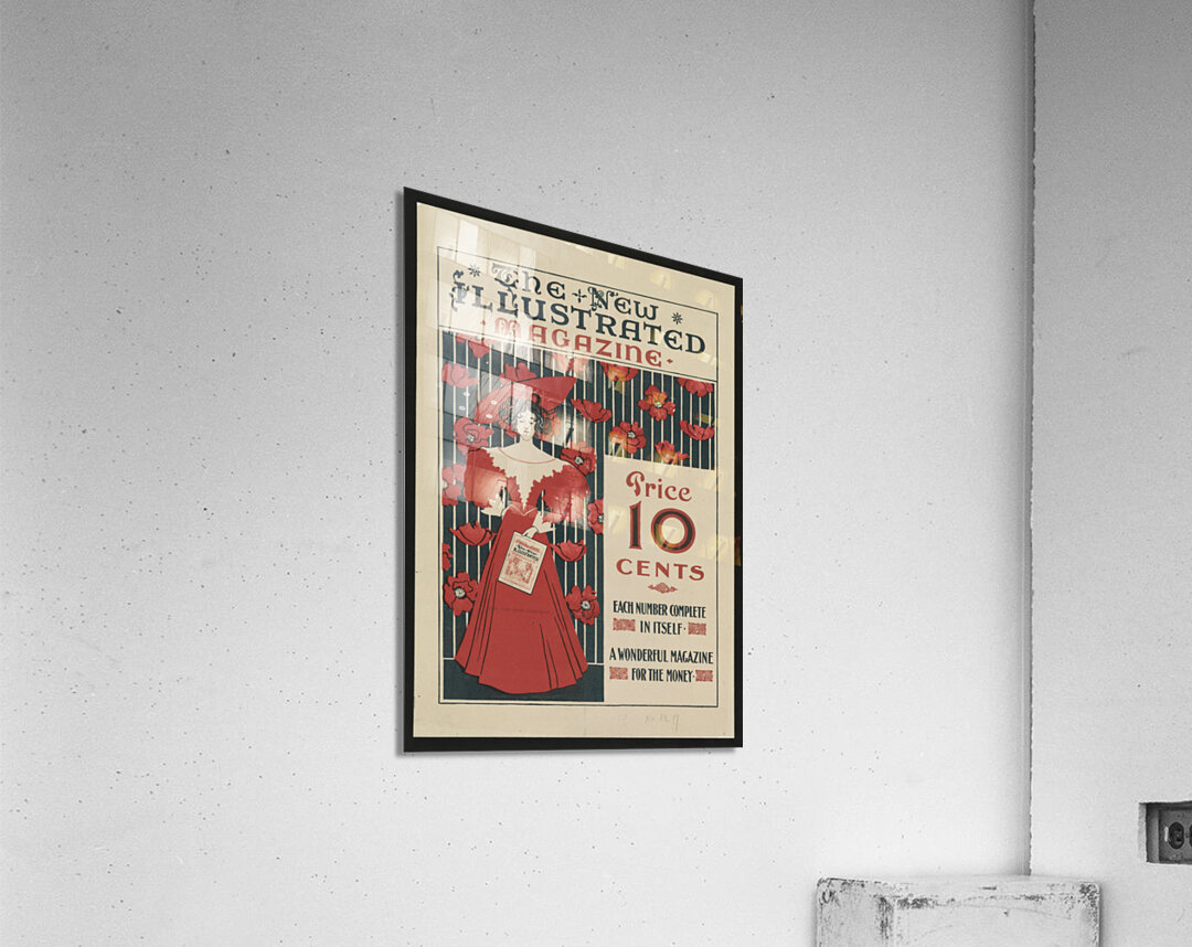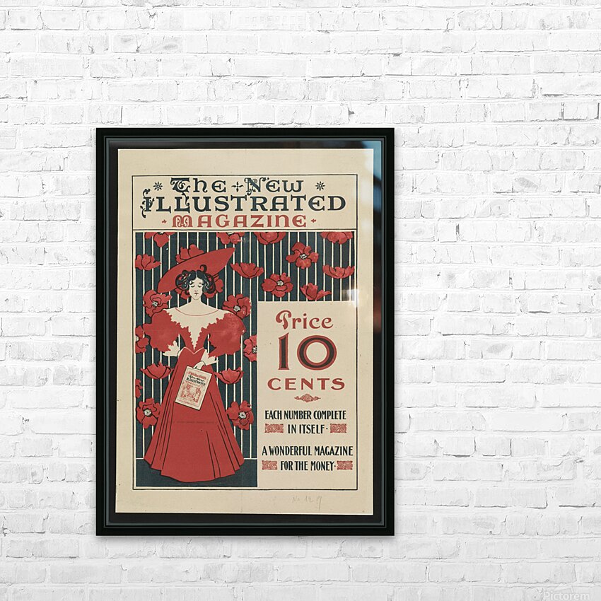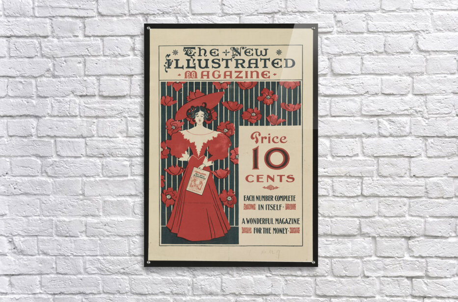 Flowers and a fashionably dressed woman standing and holding copy of the magazine 1890–1900 print by Ethel Reed. Picture Frame Printing