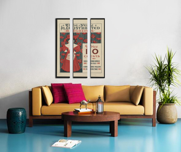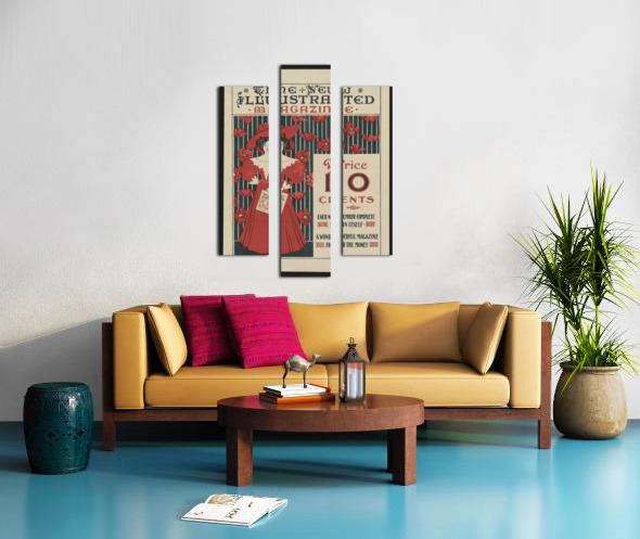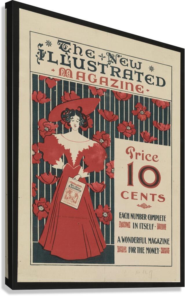 Flowers and a fashionably dressed woman standing and holding copy of the magazine 1890–1900 print by Ethel Reed. Canvas print