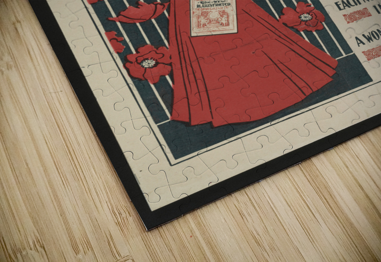 Flowers and a fashionably dressed woman standing and holding copy of the magazine 1890–1900 print by Ethel Reed. IStockHistory com Puzzle printing