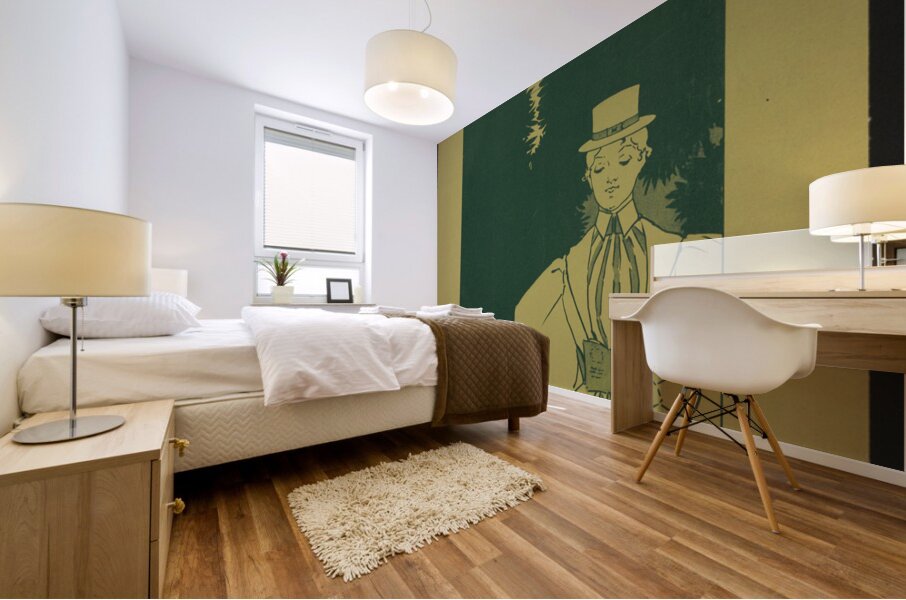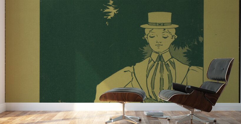 ABOUT THIS ARTWORK: WOMAN WEARING A STRIPED DRESS WITH LARGE SLEEVES A HAT AND CARRYING A PURSE 1898–1900 PRINT BY ETHEL REED.