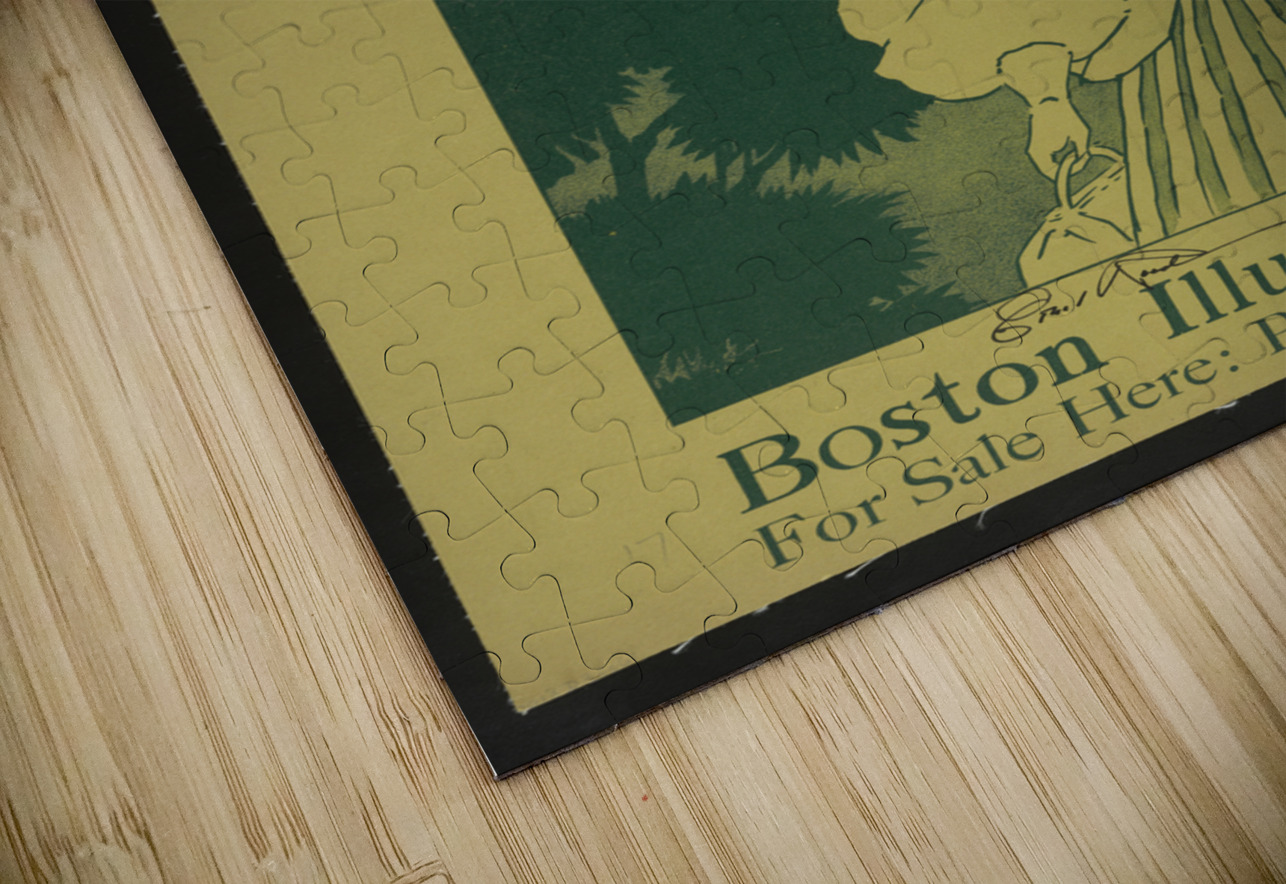 Woman wearing a striped dress with large sleeves a hat and carrying a purse 1898–1900 print by Ethel Reed. IStockHistory com Puzzle printing