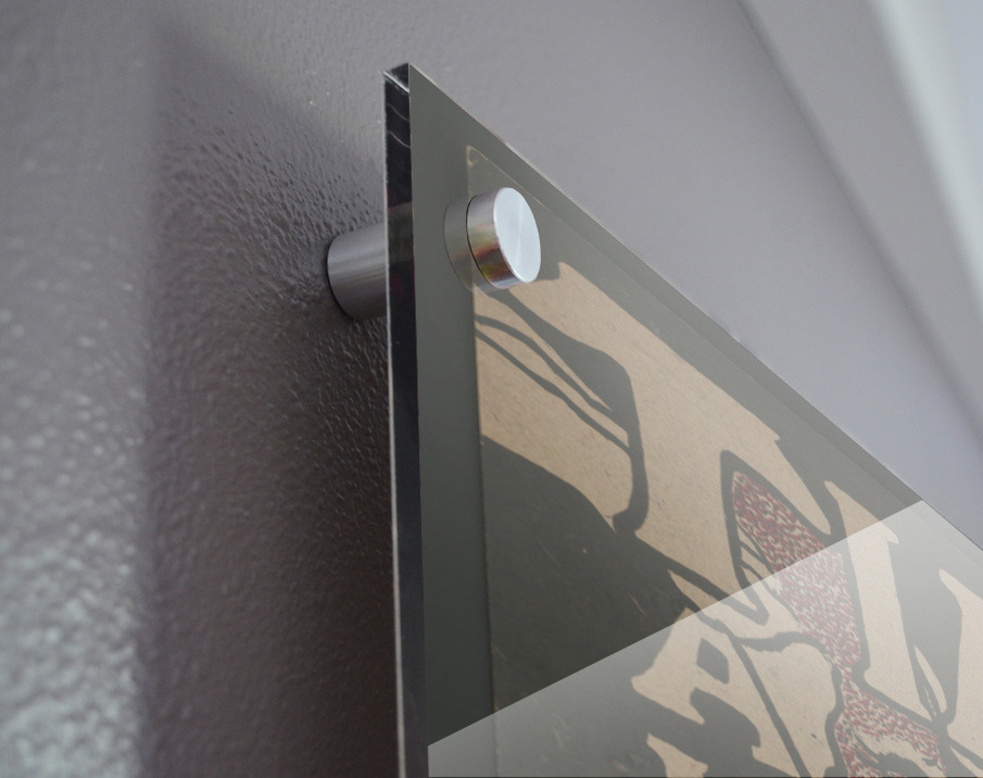 Printed to the edge - Ready to hang - provided with 4 premium polished aluminum stand off ( wall screws and mounting hardware provided ) We suggest a thicker 3/16" acrylic for any size over 42 inches to guarantee a straight acrylic, without curvature