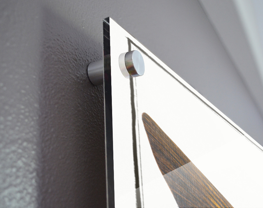 Impression sur acrylique avec entretoises ( cylindres métalliques )