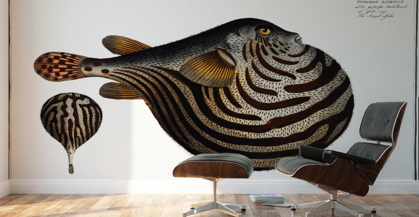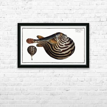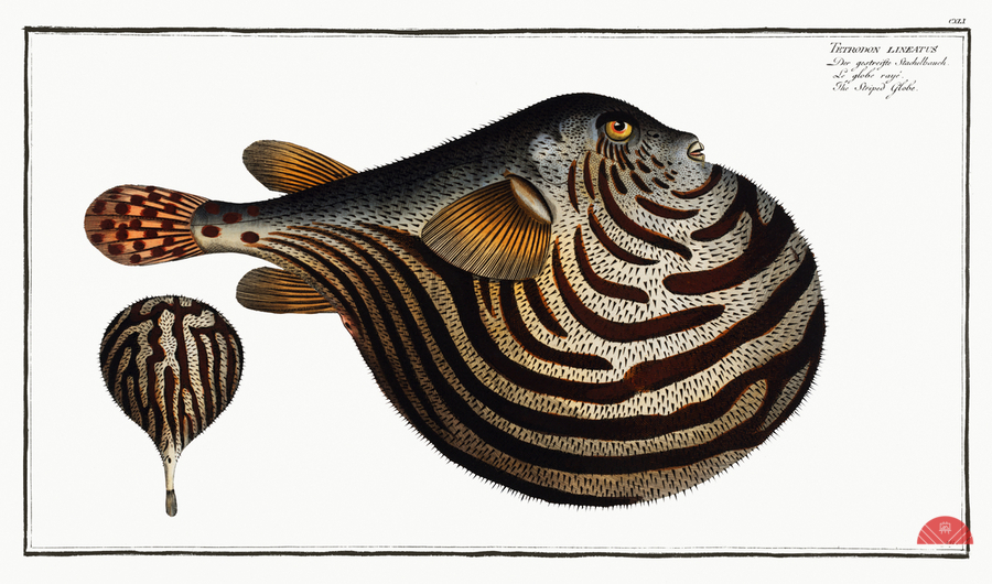 Striped Globe Tetrodon leneatus from Ichtylogie ou Histoire naturelle: génerale et particuliére des poissons 1785-1797 by Marcus Eliser 1723-1799