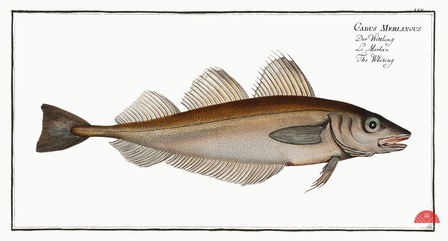 Whiting Gadus Merlangus from Ichtylogie ou Histoire naturelle: génerale et particuliére des poissons 1785-1797 by Marcus Eliser 1723-1799