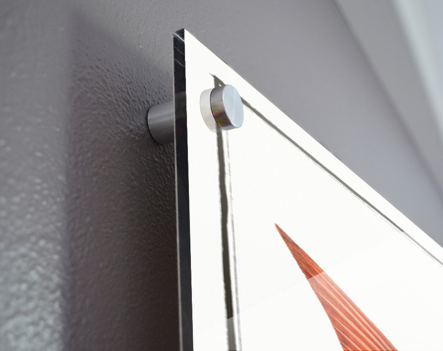 Impression sur acrylique avec entretoises ( cylindres métalliques )